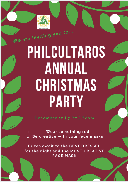 We are inviting you to the Annual Philcultaros Christmas Party on December 22, 2020, 7PM via Zoom!