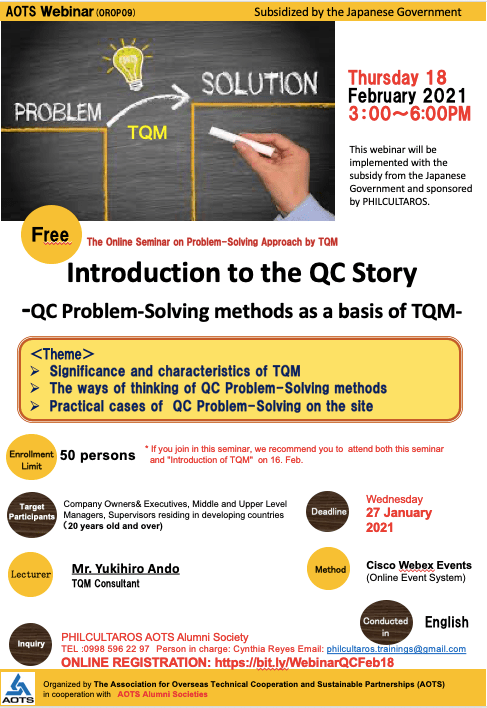 Note: If you join in this webinar, we recommend you to attend both this seminar and “Introduction of TQM” on 16. Feb