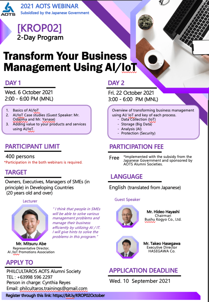 Due to public demand, here’s a new schedule for the webinar “Transform Your Business Management Using AI/IoT”