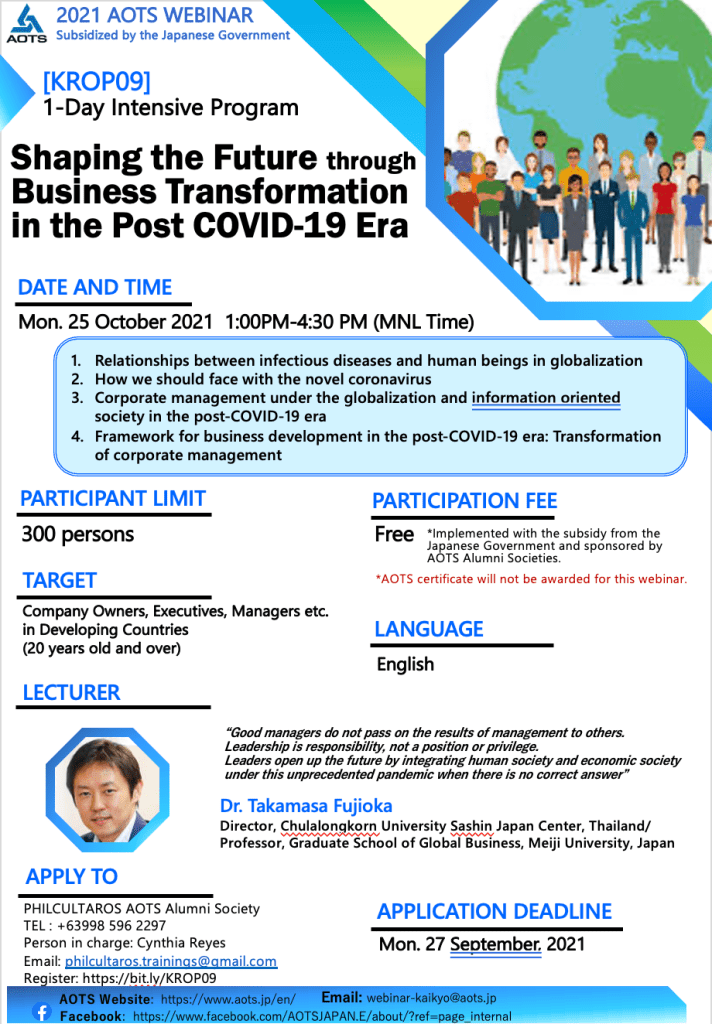 DATE AND TIME: Mon. 25 October 2021 1:00PM-4:30 PM (MNL Time)