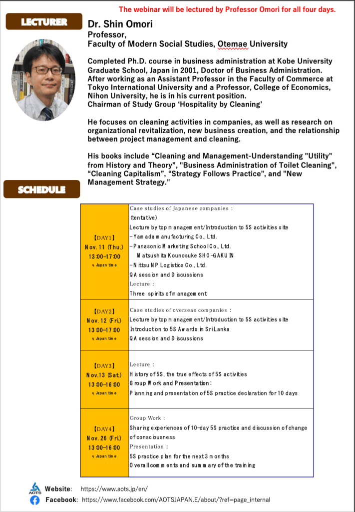 Company Owners, Executives, Senior Managers, and Managers who are in charge of 5S activities, etc. in developing countries in Asia, Oceania, Middle East, Europe and Africa ,(20 years and over)