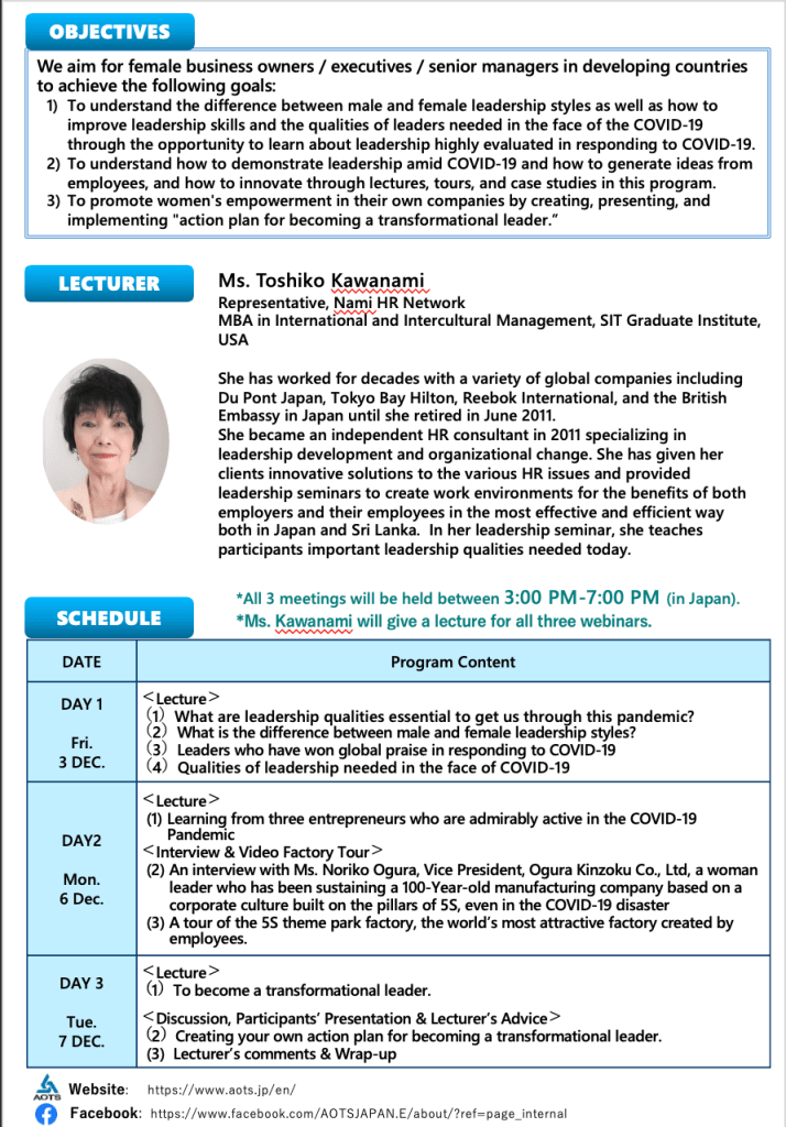 Program for Women Leaders Aiming for Further Growth amid COVID-19