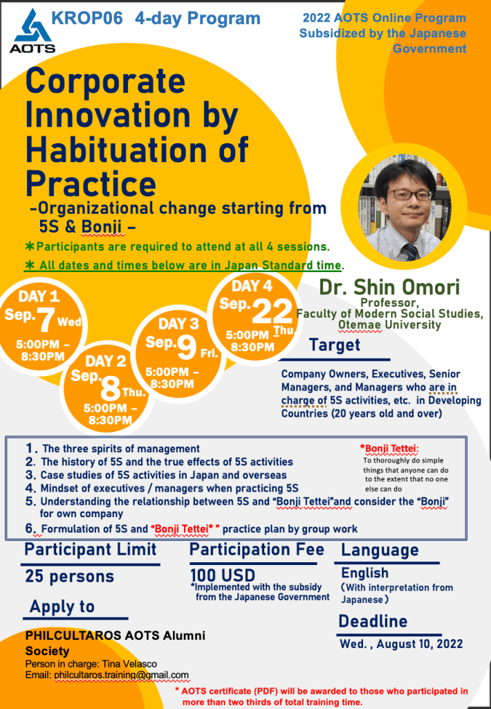 Company Owners, Executives, Senior Managers, and Managers who are in charge of 5S activities, etc. in Developing Countries (20 years old and over)