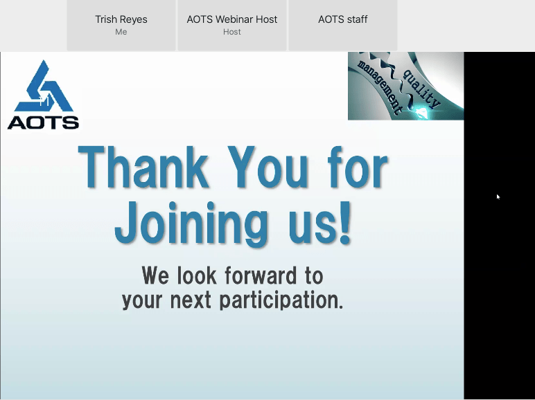 February 16 AOTS Webinar on Introduction of TQM Share this: Click to share on X (Opens in new window) X Click to share on Facebook (Opens in new window) Facebook Like Loading...